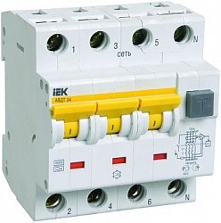 Выключатель автоматический дифференциального тока 4п (3P+N) C16 А 30 мА тип A 6 кА АВДТ-34 IEK